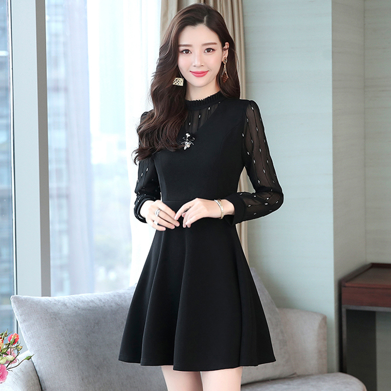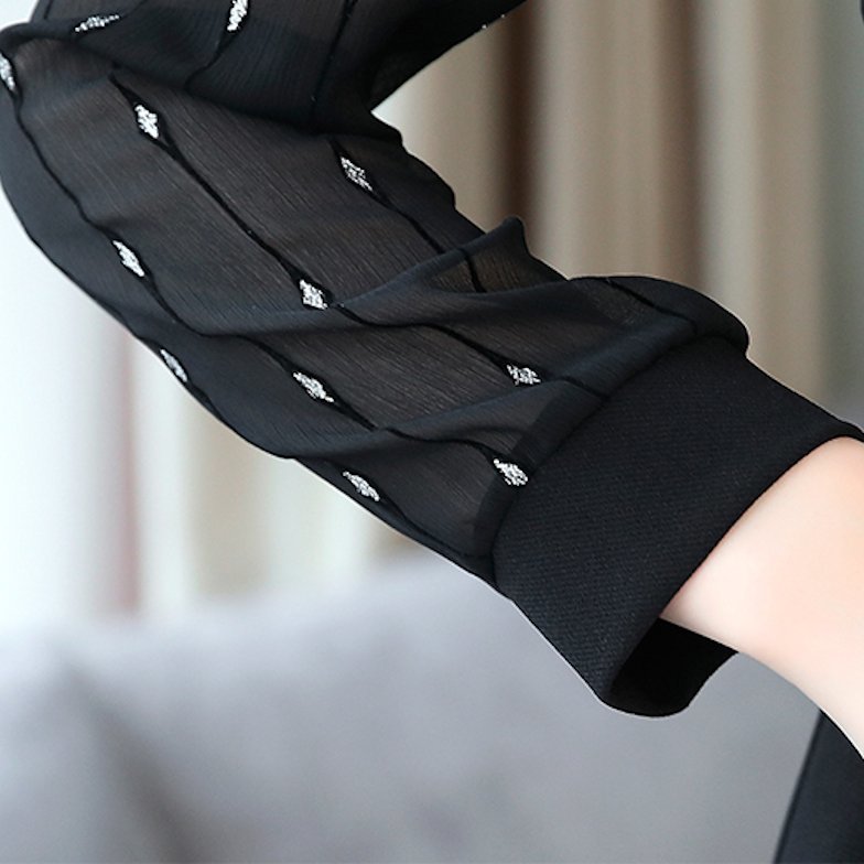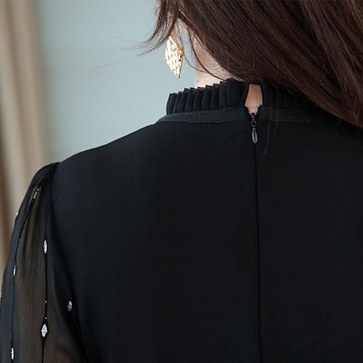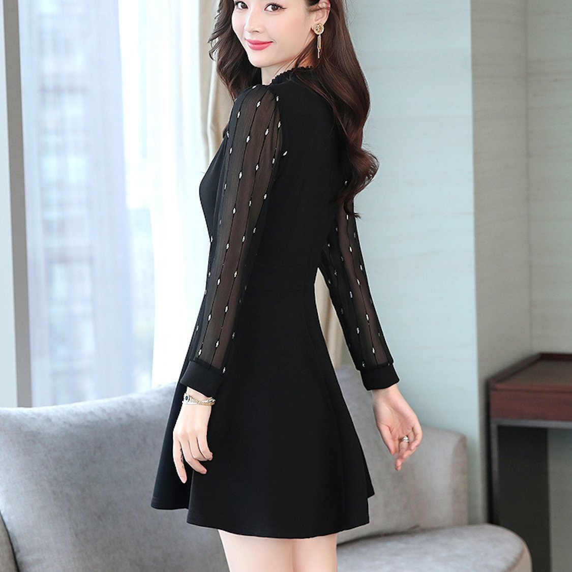 ドット柄 シースルー袖 ワンピース フリンジ装飾 ミニ丈 女子会 デート 結婚式 二次会 ストライプ 20代 30代 フレア フリル Aライン ドレス