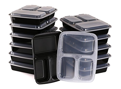 Estilo 3 Compartment Microwave Safe Bento Food Container with Lid 12-pack