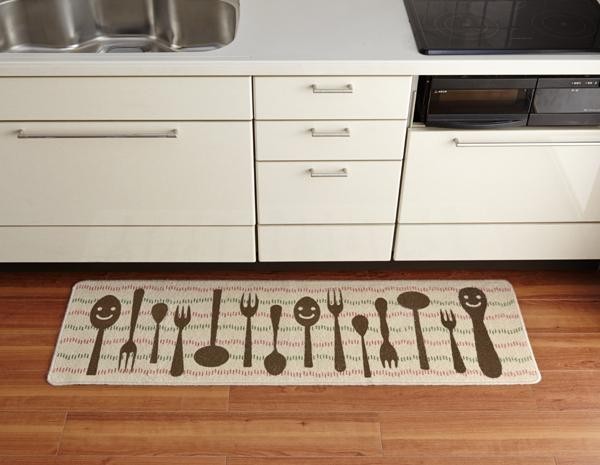 | 思わずにっこり微笑んでしまいそうな可愛らしいデザインのキッチンマット♪裏面に滑りにくい加工を施しているので、横ズレしにくいです!! |