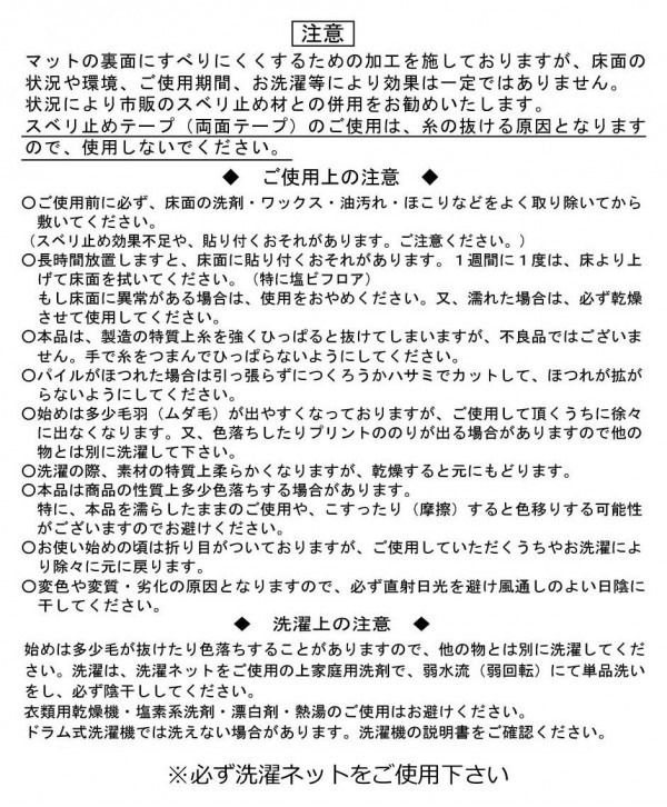 | 素材・材質 | ポリエステル・アクリル・その他(裏面すべりにくい加工) |