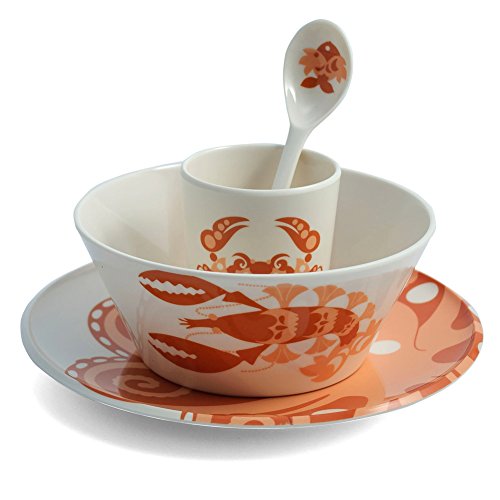 -. Feature : Set of 1 plate, 1 bowl, 1 cup and a spoon made of durable melamine / Perfect gift set for baby showers and birthdays / Made from durable melamine the plates are dishwasher safe / Not recommended for use in microwave