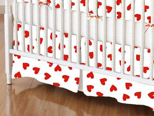 -. Title : SheetWorld - MINI Crib Skirt (24 x 39) - P.R.Imary Hearts Red Woven - Made In USA