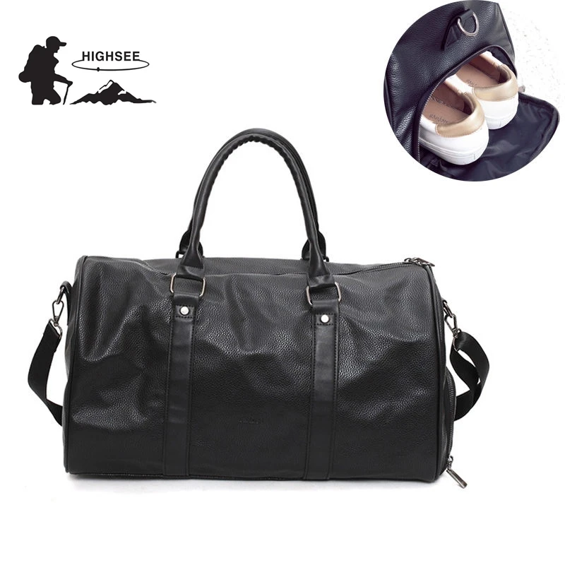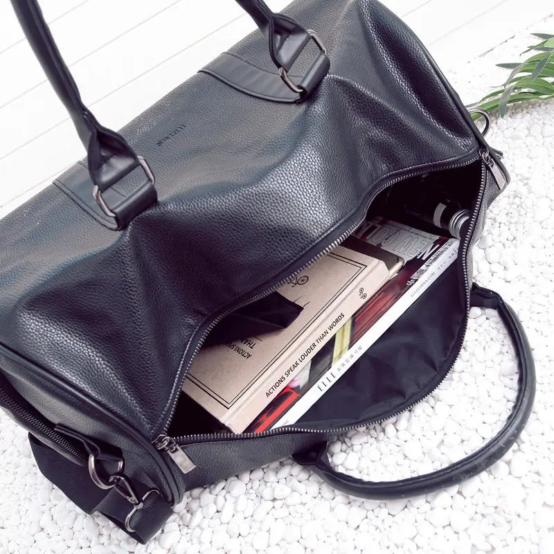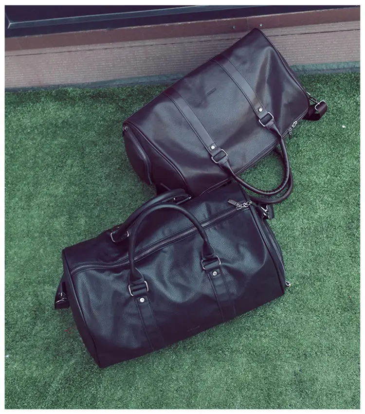 highlight:Pu leather,solid color,black,gym bags for shoes