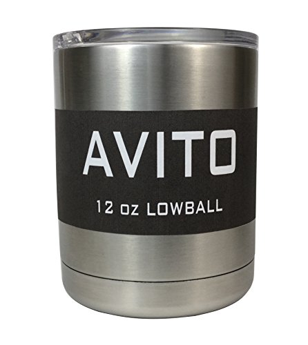 Lowball Cup Stainless Steel with Lid for Coffee Beer or Mixed Drinks by Avito - 12 oz. Double Walled and Vacuum Sealed - BPA Free - Best Value