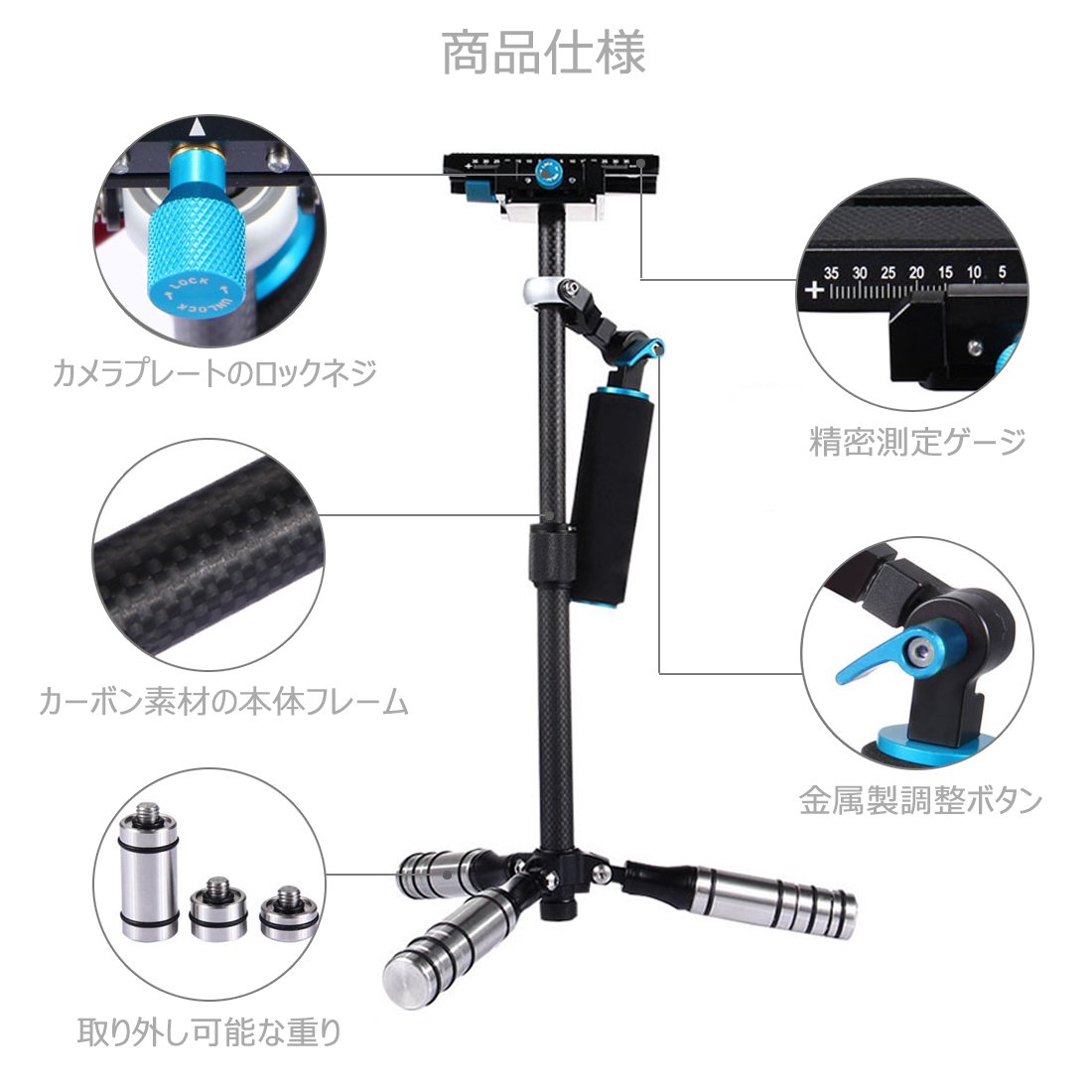 Adjust front and rear and left and right with the quick shoe part, and you can adjust the balance according to the weight of the camera by using the attached weight.