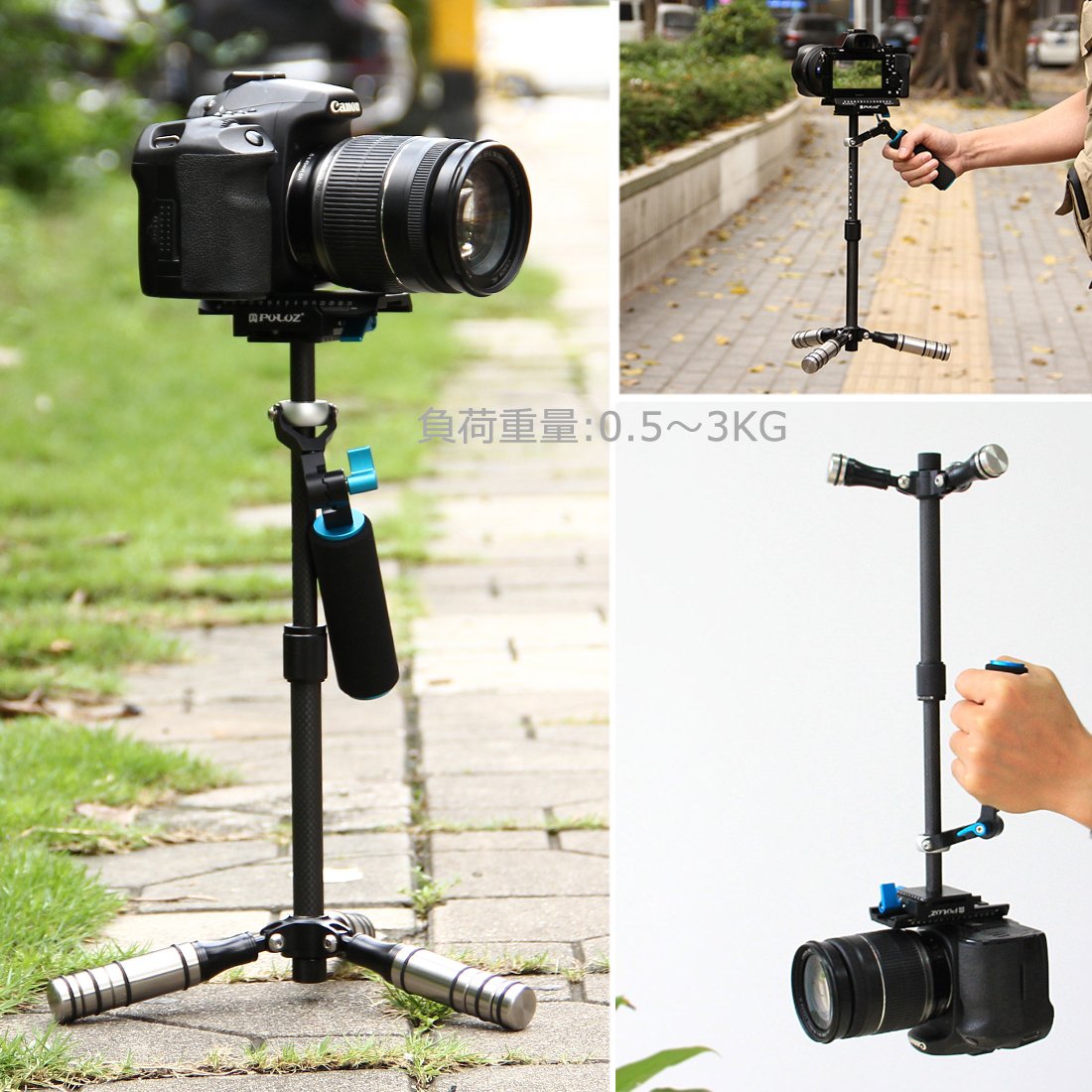 By changing camera plate, handle, body frame, it became a small, lightweight, heavy load stabilizer.