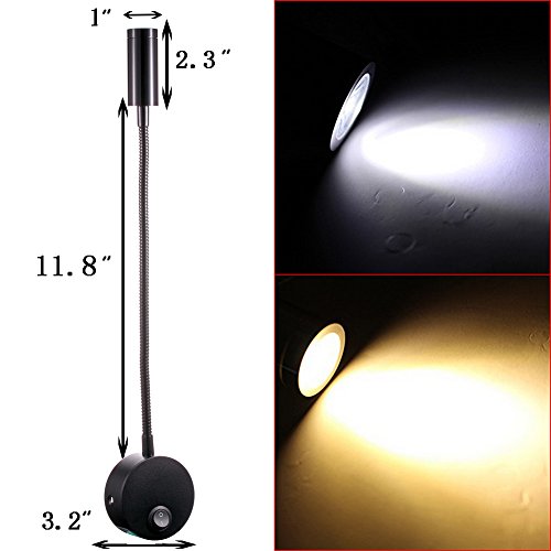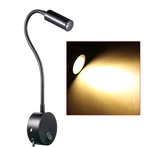 WannaBi Flexible Plug Wired 3 Watts 3W Gooseneck Led Wall Light Sconce Lamp Lighting for Bedroom Reading Bathroom