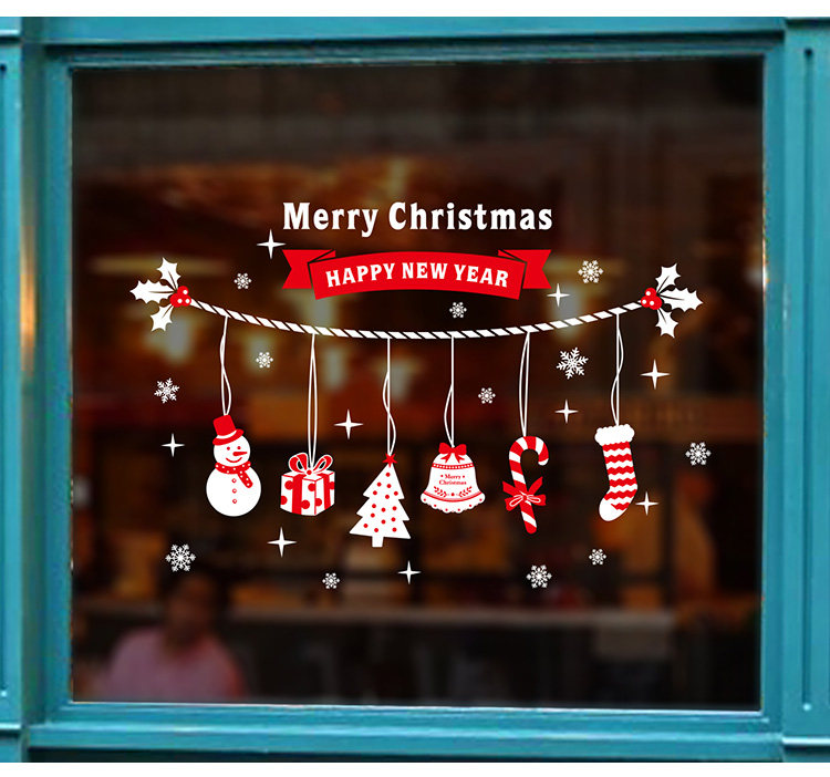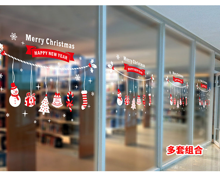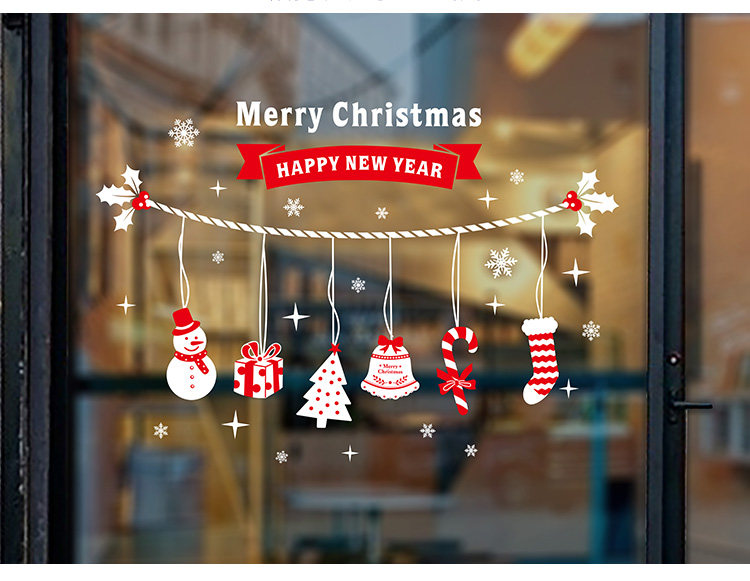 商场店铺橱窗户玻璃墙纸贴画墙贴纸新年圣诞节日雪花雪人窗花贴纸