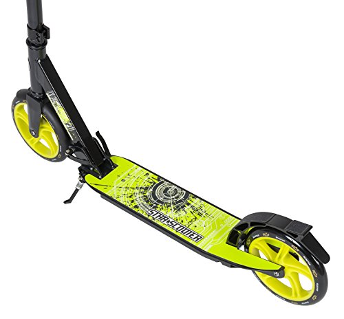 -. Feature : Lightweight premium Scooter made of high quality Aluminium / Huge carrying capacity up to 100 KG (220 lbs) / Lower foot board prevents leg fatigue / Fender/spray protection on both wheels / Giant 205 mm wheels ensure a smoother ride