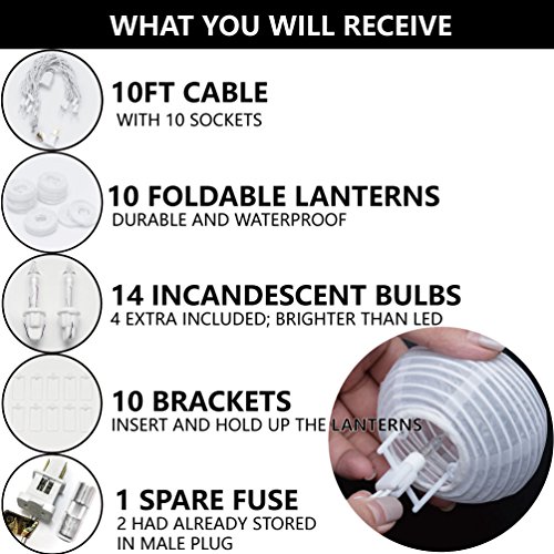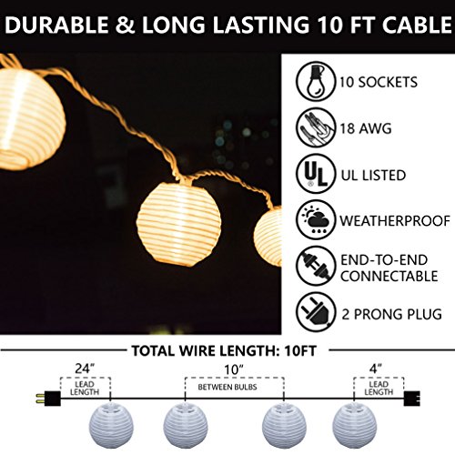 - DIY YOUR HOUSE & BACKYARD AS WHAT YOU LIKE: 110V Lantern String Lights, Ideal illumination for your backyard, terrace, gazebo, patio, or contemporary cabana, Great for hanging in any outdoor setting for heavy-duty commercial use; Perfect for creating a relaxing ambience, both indoors & outdoors; 4 EXTRA BULBS & 1 EXTRA FUSES INCLUDED.