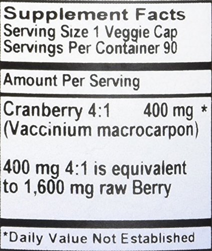 Product Description400 mg Cranberry Fruit Extract, 4:1 equals 1,600 mg Full Spectrum0