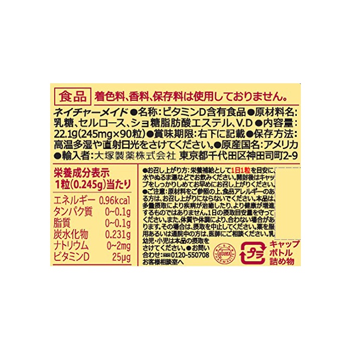 원본상품명: 大塚製? ネイチャ?メイド ス?パ?ビタミンD(1000I.U.) 90粒