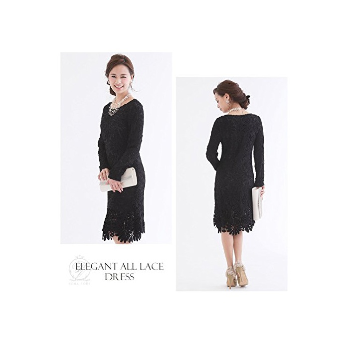 PourVous(풀《―》) (풀《―》) PourVous원피스 드레스 파티 드레스 여성 정장 Mrs. 포멀 원피스 불리 결혼식 2차 모임 피로연 크 큰 사이즈 긴 소매슬장 A라인 레이스 800