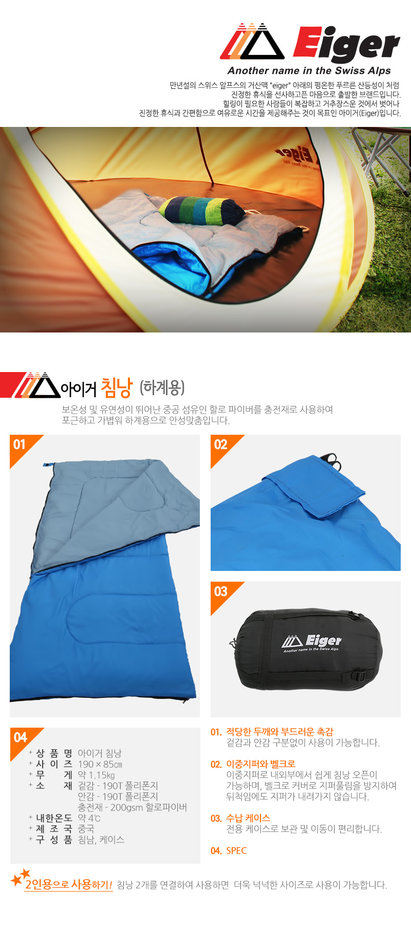 [Eiger] Pop-up shade canopy tent / one touch / camping chair / table / sleeping bag