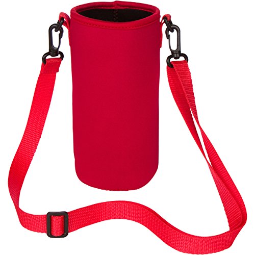 Neoprene Water Bottle or Flask Carrier Holder (32 ounces or 1-1.5 Liter) w/ Adjustable Shoulder Strap - Protect Your Containers From Damage - Cover Glass Bottles - Dog Bottle Carrier by Made Easy Kit