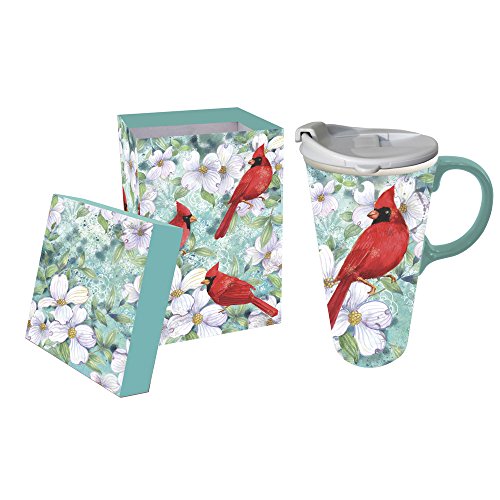 -. Title : Cypress Home Cardinal Trio Ceramic Travel Coffee Mug, 17 ounces