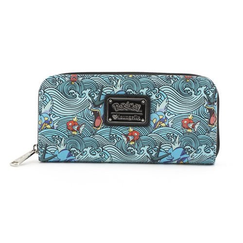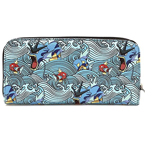 Binding : Apparel Product Description Ride along the coastal waves with our Pokemon Gyarados Magikarp zip around wallet from Loungefly. This traditional Japanese art inspired cute wallets features full-all graphics Pokemon characters in the water printed on PU leather, logo plaque hardware in front, fully lined interior with a center zipped compartment and eight card slots, and zip around closure. 0