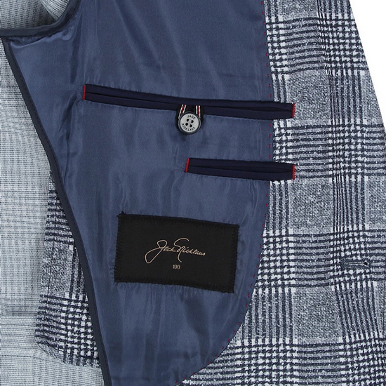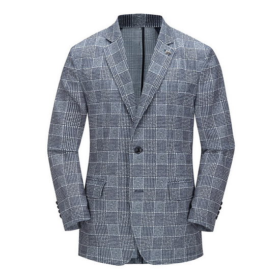 - 빅체크 패턴을 적용한 세련된 남성 자켓.