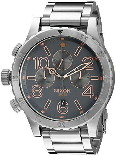 -. Binding : Watch -. Brand : NIXON -. Color : Gray/Rose Gold -. Department : mens -. EAN : 0882902789432 -. Feature : Movement: Miyota Japanese quartz 6 hand wide eye 1/20th second chronograph with date and 9 hour crown and pusher placement / Dial: The dial is surrounded by a concave dial ring and includes bold P.R.Inted indices, a P.R.Inted seconds track, CD textured subdials and custom molded hands / Analog-quartz Movement / Case Diameter: 49mm / Water Resistant To 660 Feet -. Label : Nixon Inc. -. Manufacturer : Nixon Inc. -. Model : A4862064 -. MPN : A4862064 -. PartNumber : A4862064 -. ProductGroup : Watch -. ProductTypeName : WATCH -. Publisher : Nixon Inc. -. Studio : Nixon Inc. -. Title : Nixon Men's A4862064 48-20 Chrono Analog Display Analog Quartz Watch -. UPC : 882902789432