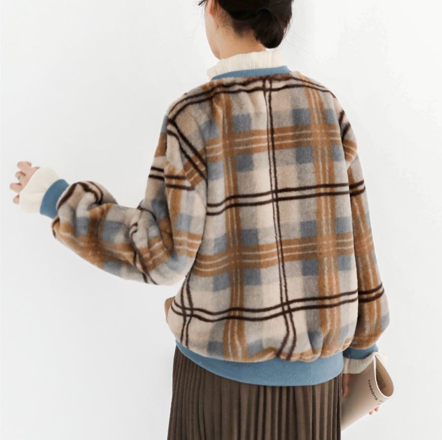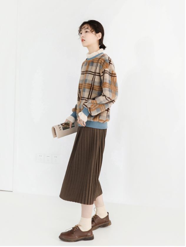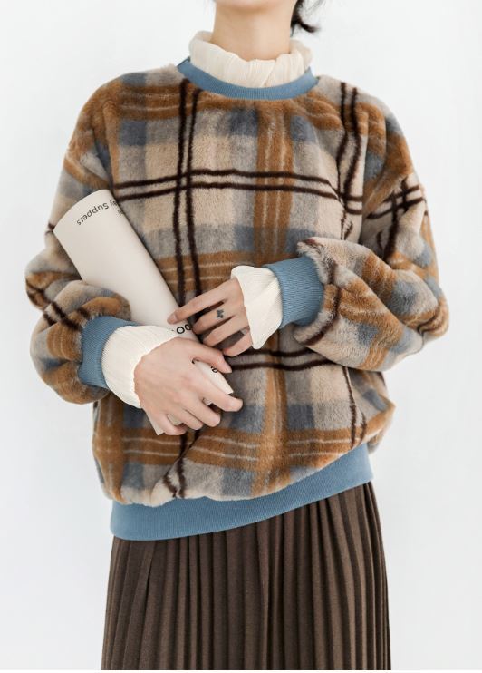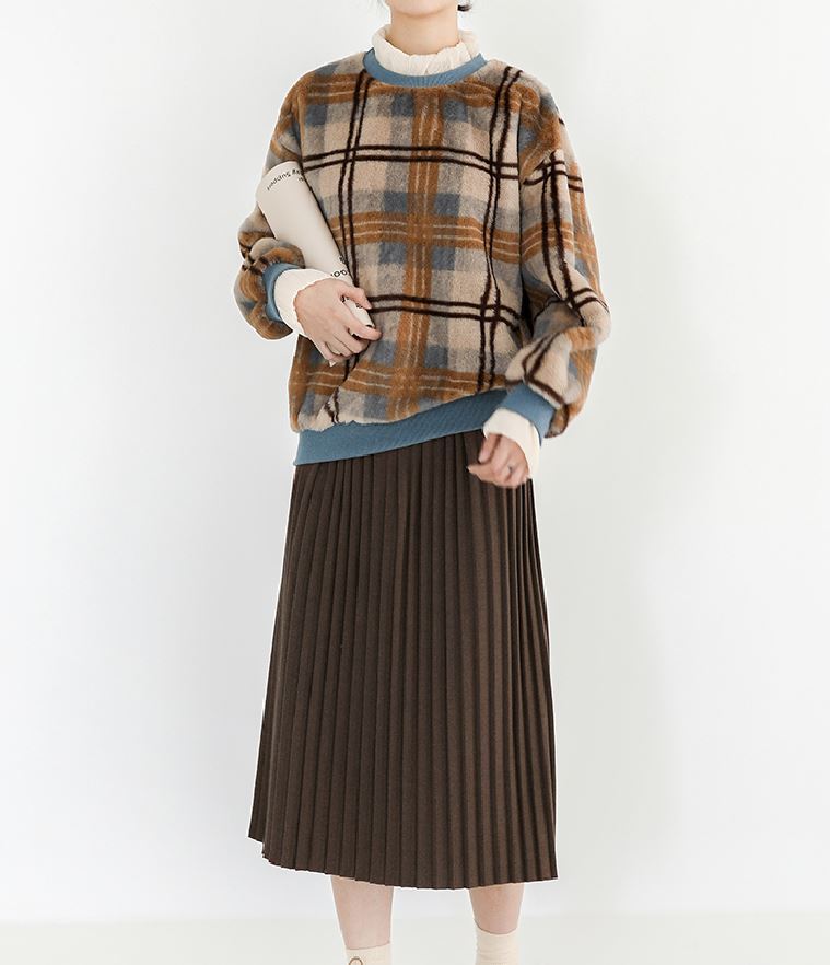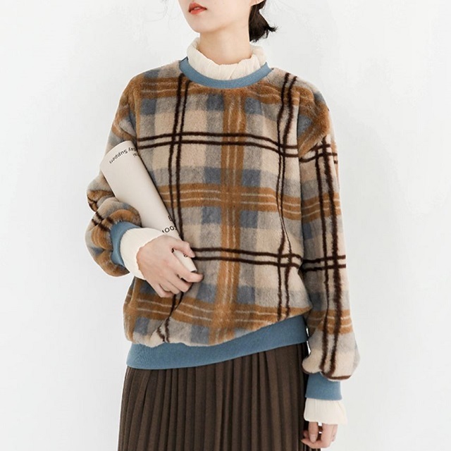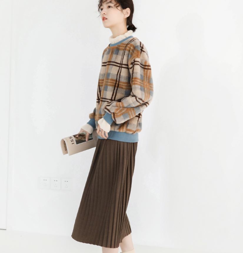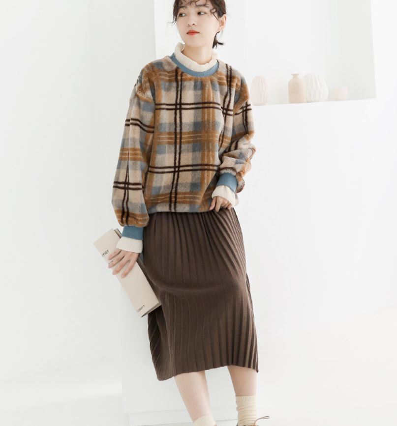 この季節にぴったりの配色&重ね着風のデザインがオシャレなチェック柄セーター☆