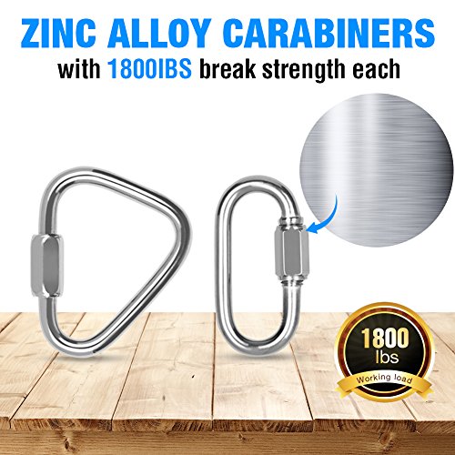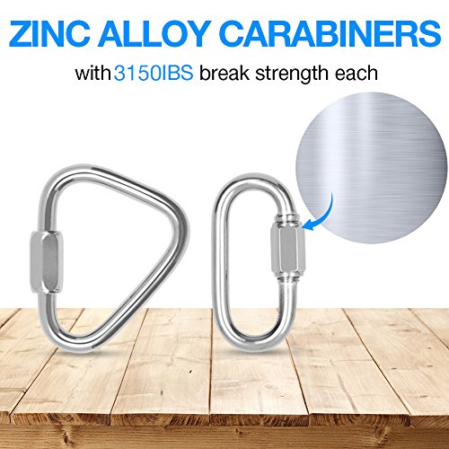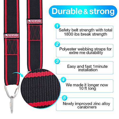 How to install the swing straps: 1.Toss these swing straps over a sturdy branch 2.Pull the slip-knot tight. 3.Use the carabiners to attach the swing to the hanging straps. Specification: Material: Polyester Weight Capacity: 3150 lbs Item Weight: 1.2 lbs Length: 10 Ft each strap Fit Swing Types: Classic swings/Garden swings/Toddler swings/Porch swings/Patio swings