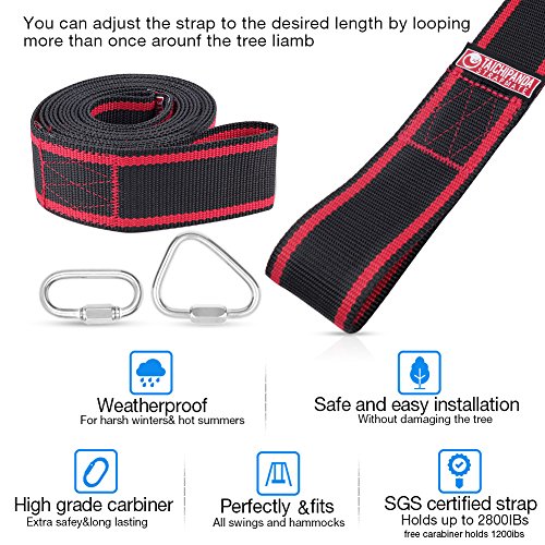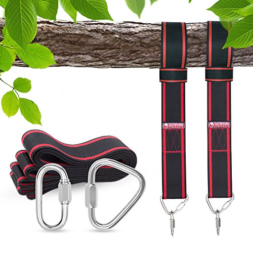 >>The wide strap is far less likely to damage tree branch than rope, and you won't have to worry about rope chaffing and fraying or about improperly ties knots giving way. And you'll never have to worry about the strength of the strap and carabiner set as our wide tree swing straps were made of high quality material which can hold up to 3150 lbs!