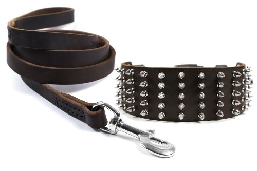 (Dean Tyler)/Pet Supplies/Flea Tick Control/DIRECT FROM USA/Dean Tyler Wide Spike Nickel 38-Inch Collar with One Matching No Assumptions Leash, Brown