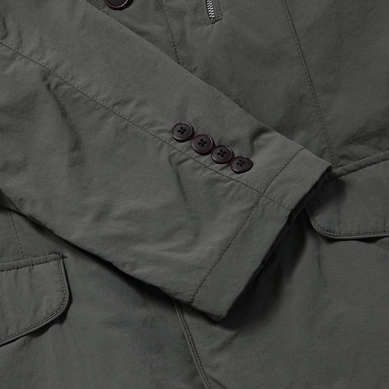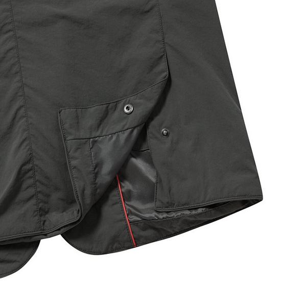 - 밑단 스냅 버튼의 사이드 벤트로 활동성을 전해줌.