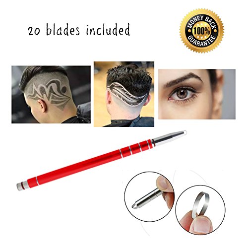 SATISFACTION GUARANTEE 100% MONEY BACK: 20 Blades Included - High Quality Stainless Steel Razor Pen helps you create amazing hair tattoo designs on men, women and children
