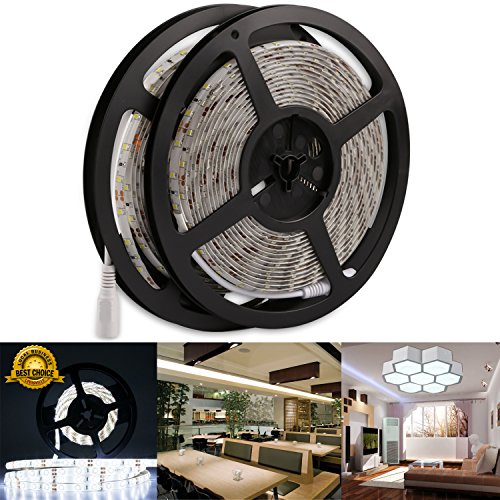 Strip Led 2 Rolls (32.8 Ft/10M) Led Strip Lights Waterproof IP65 DC12V Led Light Strip SMD2835 300 Leds Cool White Led Tape Lights Flexible Light Strips DIY Decoration Ceilling mirror and outdoor