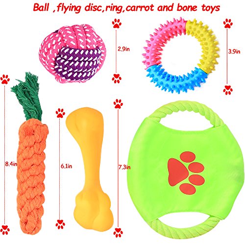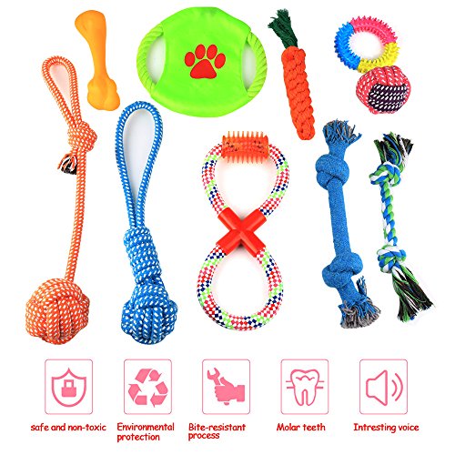 PRODUCT FEATURES: The rope chew toy during chewing promote clean teeth and help control plaque and tartar buildup, reducing plaque build-up and preventing gum disease. The colour of profusion, squeaky toys will be issued a ringing of the bell, attract their attention, the design of the elastic, in the process of playing from harm, is the ideal Dog Chew Toys. In your interactions and dogs, the use of Dog Ropes to the toy interest, promotes the feeling of the host and the dog. Help the dog's mental development, make the dog more lively .