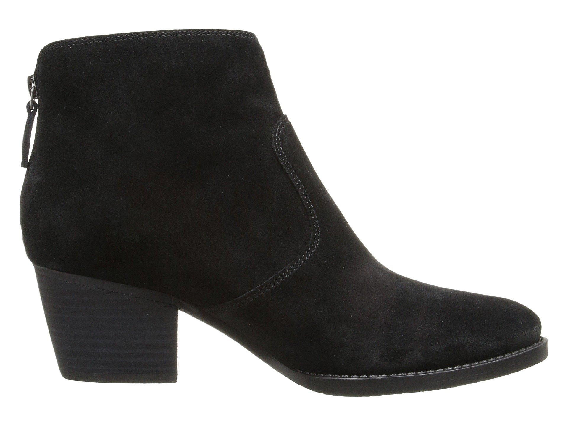 | Product Information SKU: #8771535Don't waste any more time looking for the perfect bootie because it's right here.Leather or suede upper with back zipper closure.Smooth man-made lining and cushioned footbed. Stacked chunk heel and flexible man-made outsole.Imported.Product measurements were taken using size 7.5, width M. Please note that measurements may vary by size.Weight of footwear is based on a single item, not a pair.Measurements: Heel Height: 2 in Weight: 13 oz Circumference: 10 1?4 in Shaft: 5 in |