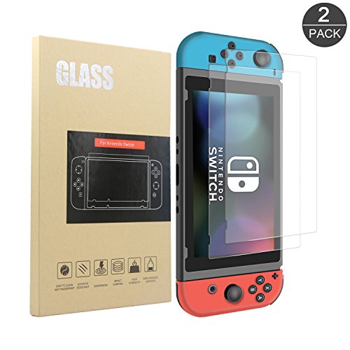 -. Feature : PARTICULAR DESIGN: This screen protector is specifically designed for Nintendo Switch (2017), Laser-cut dimensions provide maximum screen coverage. Amazing look and feel! Real glass makes for real difference in quality and touch sensitivity. / SCRATCH-RESISTANT: Made from superior 9H tempered glass that is scratch resistant and shatterproof protecting your screen from scratches to high impact drops. Oleophobic Anti-FingerP.R.Int Coating- keeps your screen free of fingerP.R.Ints and oily smudges and is easy to clean. / HIGH TRANSPARENCY: 0.33 mm in thickness maintains original response sensitivity and touch feeling. 99% HD clarity with high responsive touching performance makes your Nintendo Switch function work smoothly and faster. / CONSOLE COMPATIBLE: Works While Docking, The screen protector will not interfere with the docking system. Ultra thin thickness is reliable and resiliant, and promises full compatibility with touchscreen sensitivity. Easy installation and no residue when removed. / PACKAGE INCLUDES: 2 x Nintendo Switch Tempered Glass Screen Protector,Micro-Fiber Cleaning Cloth, Alcohol package and Dust stickers,Installation manual.