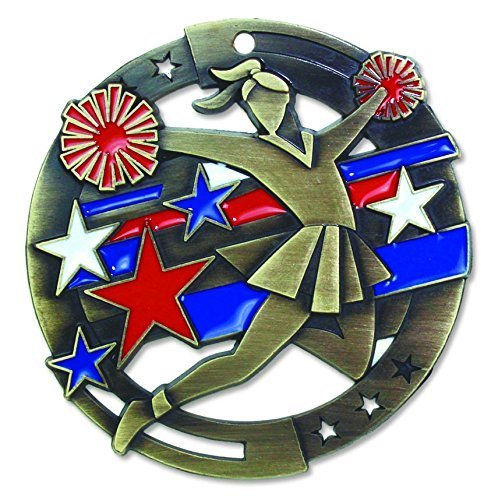 Gold Cheer M3XL Die Cast Medal - 2.75 Inches - Includes Red, White & Blue V-neck Ribbon