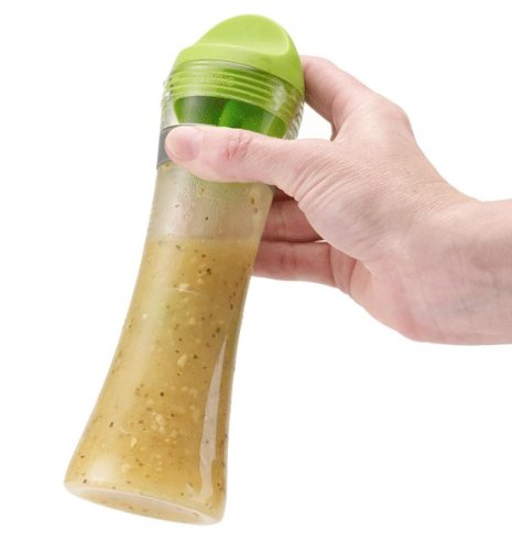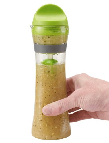 Studio : Jokari Publisher : Jokari Binding : Kitchen Product Description The Portion Control Dressing Cruet by Healthy Steps measures out the proper serving size of healthier, homemade salad dressings. Simply fill with flavored vinegar, olive oil and herbs or follow one of the healthy dressing recipes embossed on the bottle. Cover the top with your finger and give it a shake. The built-in emulsifier mixes the ingredients quickly. One easy squeeze of the cruet is all it takes to fill the top serving chamber with a 2 tbsp serving of salad dressing. Then pour over your fresh green salad and enjoy! The Healthy Steps Dressing Cruet holds just over a cup…that’s 8 servings of salad dressing. 0