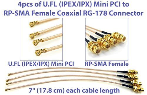 Package Includes: 4pcs of U.FL Mini PCI to RP-SMA Female Pigtail Coaxial Low Loss RG-178 Cable