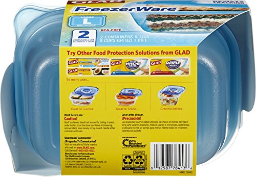 Glad Food Storage Containers, FreezeWare, Large, 64 Ounce, 2 Count
