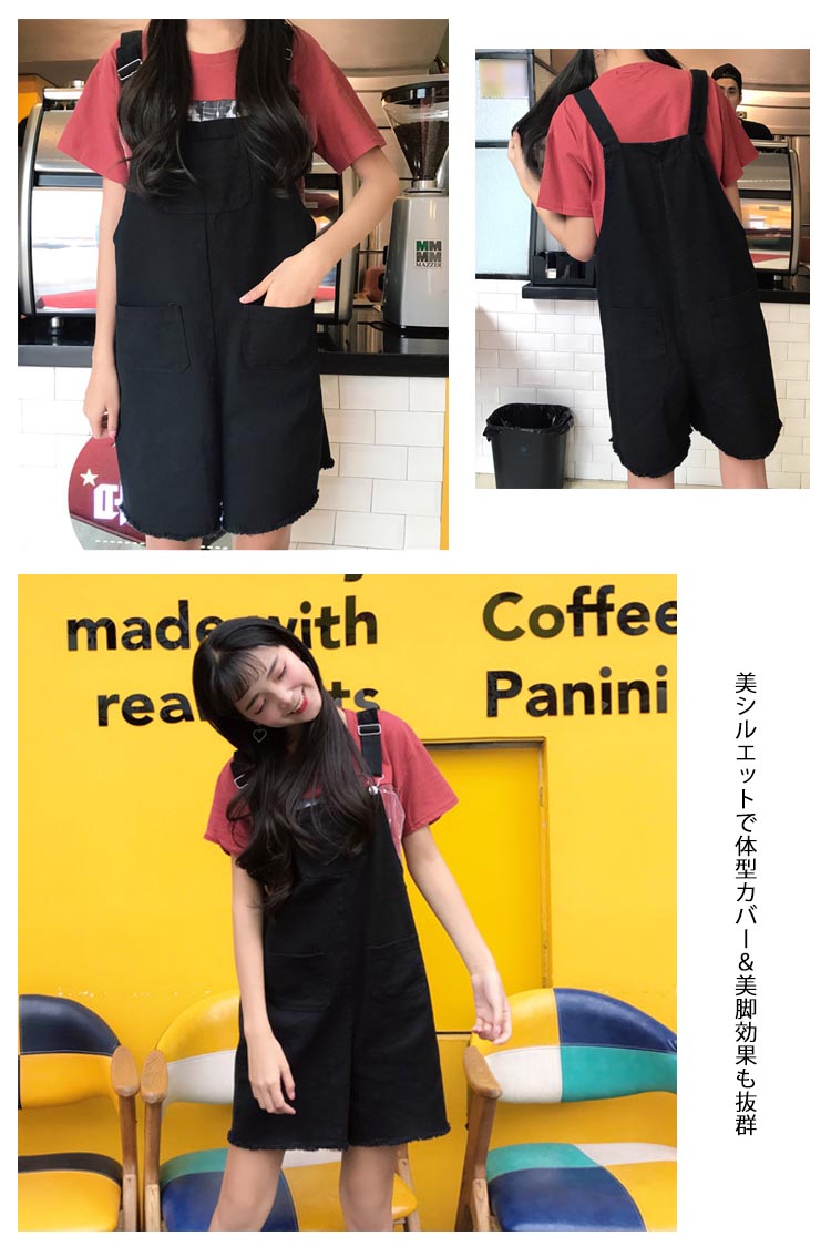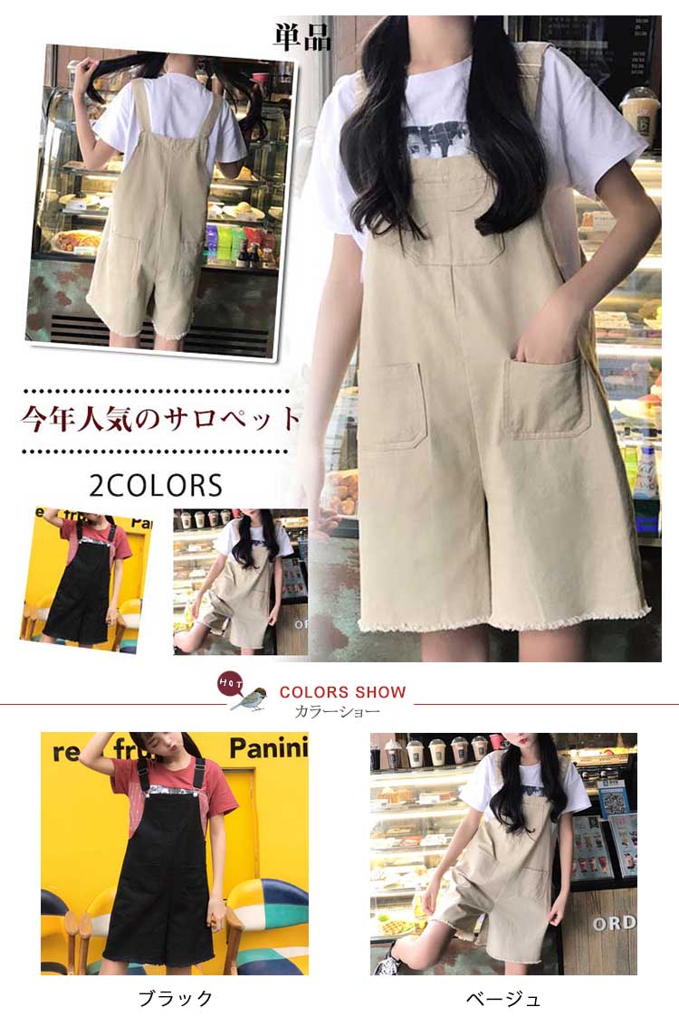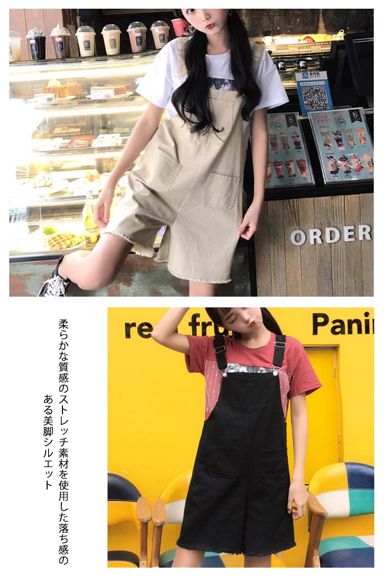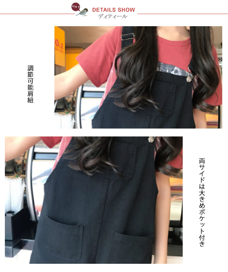 | 今年人気のサロペット両サイドにはポケット付き柔らかな質感のストレッチ素材を使用した落ち感のある美脚シルエット美シルエットで体型カバー&美脚効果も抜群 | |