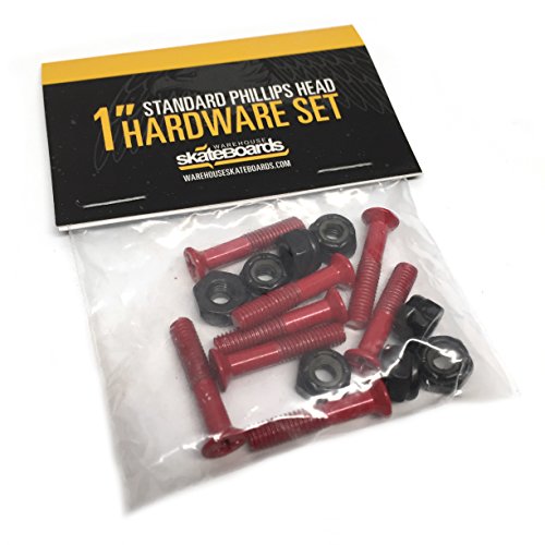 -. Feature : One (1) set of Warehouse Skateboards 1" mounting hardware / Set includes: eight (8) Red bolts and eight (8) matching lock nuts / Mounts skateboard trucks to the deck / Durable hardware that can withstand the toughest abuse / NOTE: Please ensure proper length when ordering