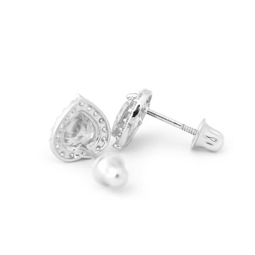 - Title : [For Babies, Kids] 14k White Gold & Birthstone CZ Heart Halo Earrings - December - Blue Topaz