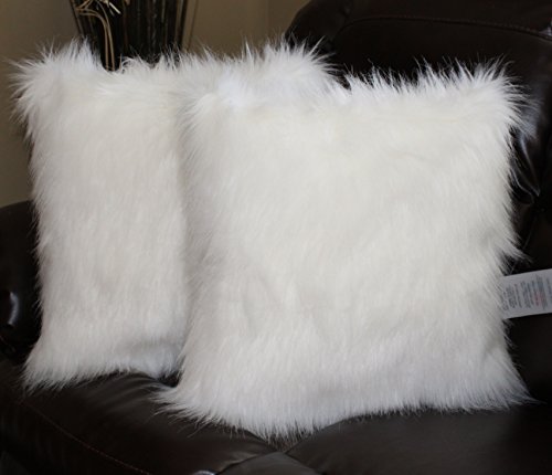 Faux Fur Pillow Cover Arctic Fox White 18 X 18 in - Set of 2