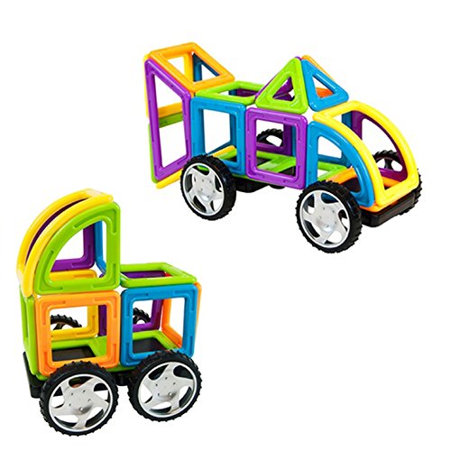 Set Includes:100 pieces total - Assortment of Magnetic Tiles - Figures - Wheel basis