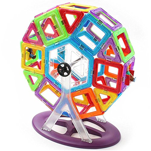 Introducing "100 pieces Deluxe Shape Set - Magnetic Stick N Stack "! This set includes 100 pieces in total. Ranging from over 50 magnetic tiles, over 10 figures and includes the well loved 2 wheel basis as well. This set includes some all NEW never before seen shapes too! You can create the picture that is on the box of this set, with the dome top - or create what your heart desires. Have in mind that since a dome is more of an oval shape, once that rounded part is build - you can't build on top of that.