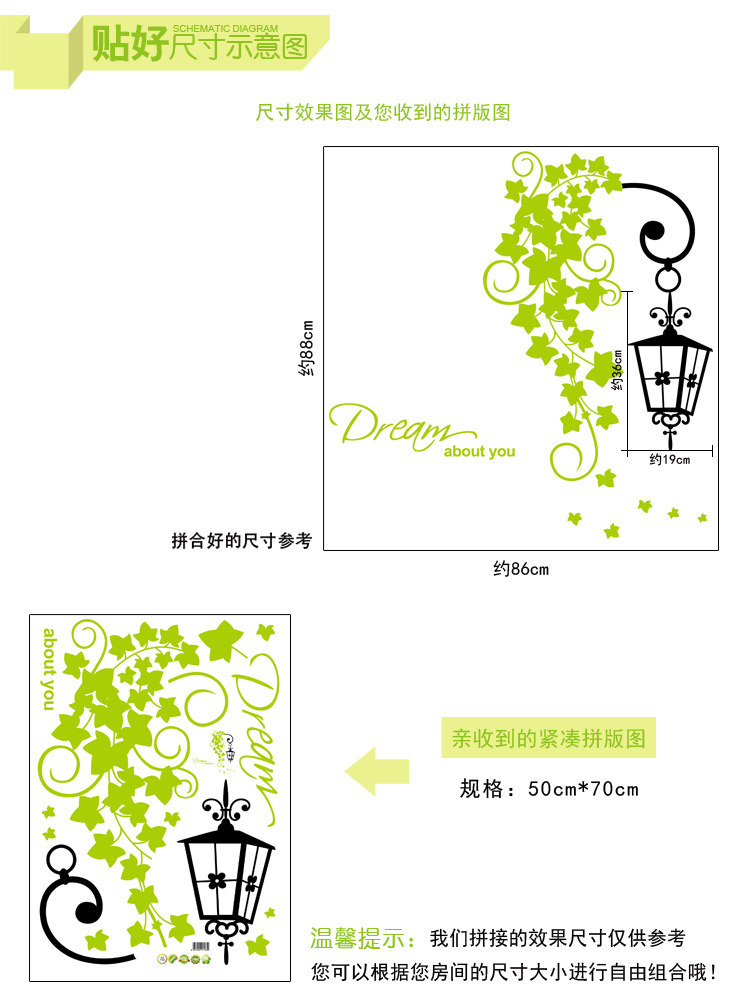 Brand: peace of mind Wall Stickers Type: waterproof wall stickers Material: environmental protection PVC, primer as a removable adhesive, without transfer film, can be pasted directly. Style: simple and modern Pattern: Plant flowers Pricing Unit: set Wall Sticker Style: Plane Wall Stickers size: detailed dimensions refer to the effect of Image (unit: cm) Sizes, "you receive the product layout size" and "collage after size reference" two The effectiveness of our new tile size is only for reference, you can according to your room size free combination.