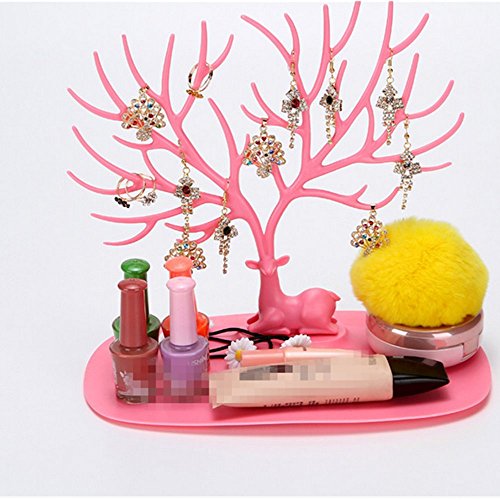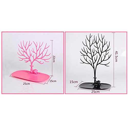 Ki'dream Bracelet Necklace Holder Black Jewelry Organizer Stand Ring Tray Deer Antler Tree Design - PINK