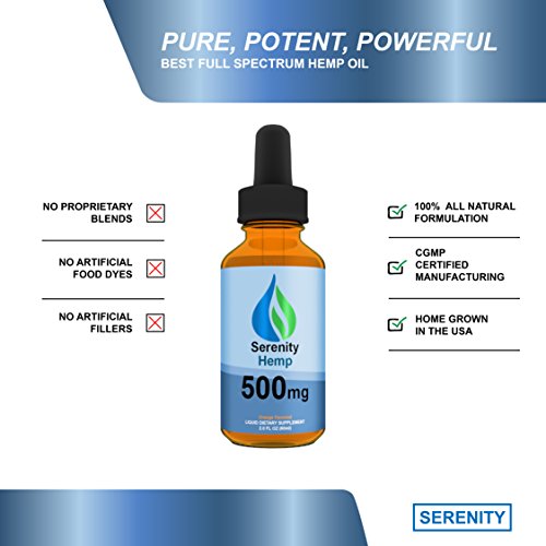 -. Feature : GIVE YOUR BODY THE MISSING NUTRIENTS IT NEED! h.e.m.p is one of the most underrated superfoods that is missing from your diet! Packed with phytonutrients and essential fats, a daily dose of h.e.m.p can boost your system in multiple ways. h.e.m.p oil is considered "nature's most perfectly balanced oil," because it contains a 3:1 ratio of Omega 6 and Omega 3 fatty acids that are beneficial to your overall long-term health. / RELIEVE YOURSELF FROM STRESS AND ANXIETY! Are you tired of being stressed and feel like you can never relax? h.e.m.p oil is enriched with essential fatty acids that have been proven to help mood health. Our product will give you the best Omega supplementation to improve mood disorders such as bipolar disorder, depression and anxiety, and ADD/ADHD. How is this possible? Healing terpenoids within our h.e.m.p oil help regulate powerful neurotransmitters within our body and help balance our moods. / BOOST AND SUPPORT YOUR SYSTEM! Full Spectrum h.e.m.p Oil will benefit your body in numerous ways, not just reducing your stress or anxiety. Here are some ailments that may be relieved: - Healthier Skin and Hair - Antioxidant Protection - Arthritis and Inflammation - Hormone Balance - Immunity Boost - Heart Support - Nervous System Support - Sleep Aide / SAFE AND EASY TO USE! Does h.e.m.p oil contain THC and will it make me "high"? No, our potent h.e.m.p oil contains absolutely no THC and has no psychoactive effects. This product is also gluten free, non-GMO, vegan friendly and organic! Our product is readily absorbed with an easy to use liquid dropper and assimilated by the body to assure optimal benefit. / USA MADE! Serenity h.e.m.p's Full Spectrum h.e.m.p Oil drops are made in the USA by an FDA Inspected and GMP Certified Facility.