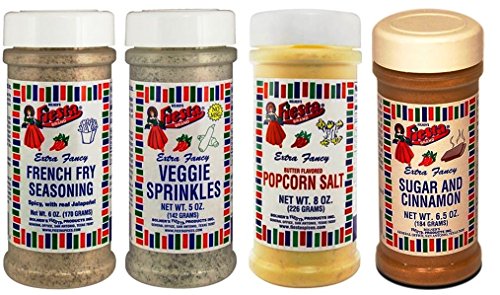 -. Title : Bolner's Fiesta Pantry Staples 4 Flavor Variety Bundle, (1) Each: French Fry Seasoning, Veggie SP.R.Inkles, Butter Flavored Popcorn Salt, Sugar and Cinnamon, 5-8 Oz. Ea.