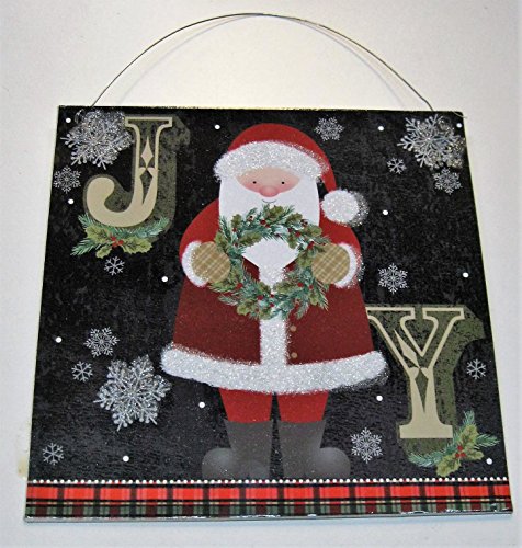 - 7" x 7" Christmas "JOY" tin sign with Santa Claus in the center