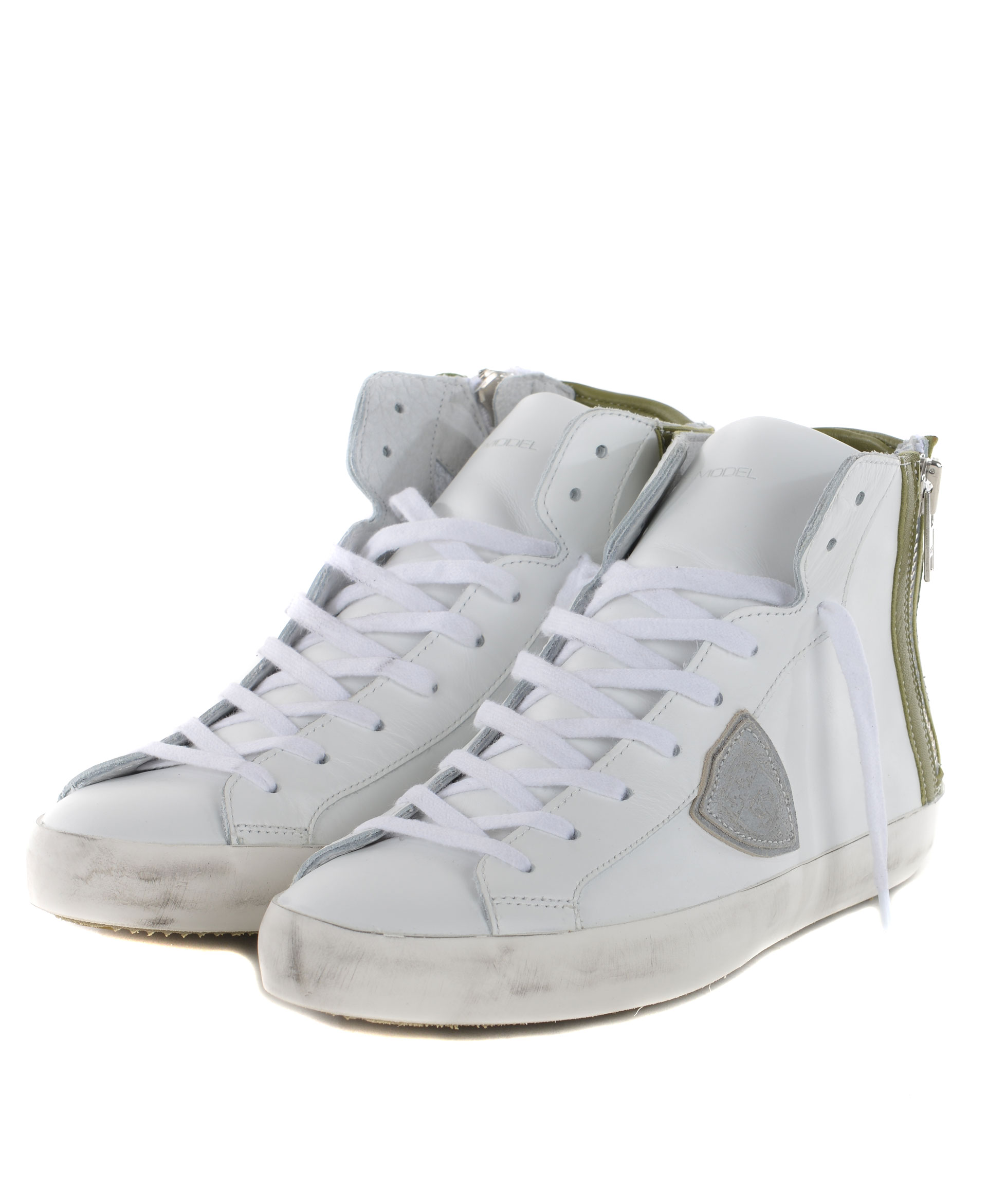 High Bike Hi-Top Sneakers from Philippe Model: White High Bike Hi-Top Sneakers with round toe, logo patch at side, branded insole, side zip closure and front lace-up fastening.