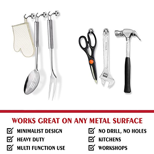 - ✔ POWERFUL & ATTRACTIVE - Brushed nickel finish looks great wherever you place these magnetic hooks. Use for organizing, decorating and storage. Our strong magnetic hooks will reliably hold 19lb in direct pull and 6lb in side pull.